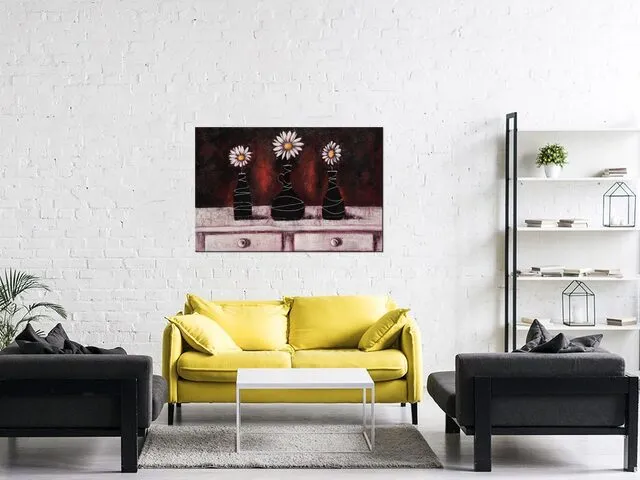 Úvod » Obrazy » Obrazy ručne maľované » Trio margarétok Obraz maľovaný ručne