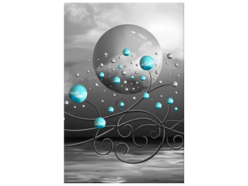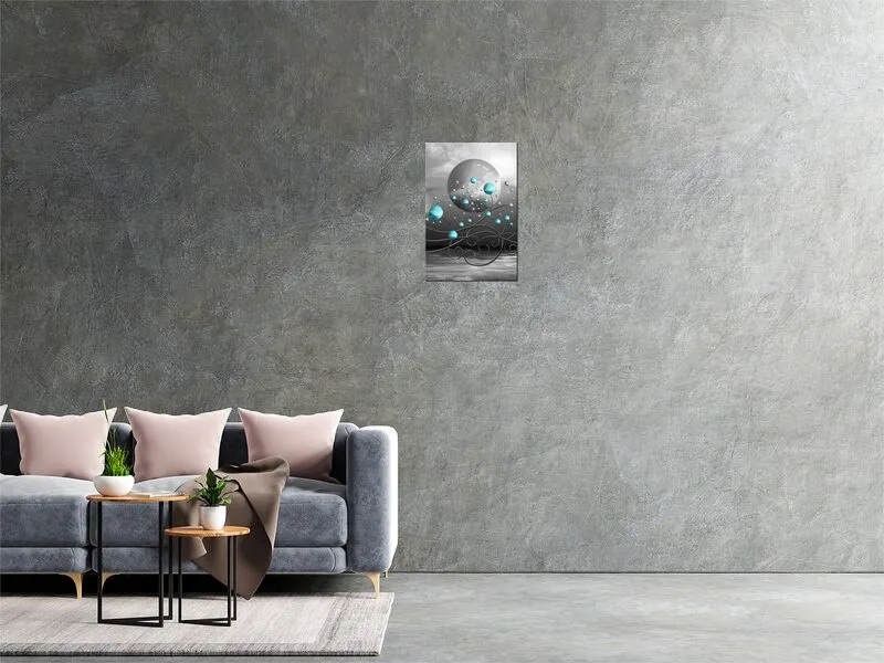 Úvod » Obrazy » Obrazy na plátne » Abstrakt » Tyrkysové gule na sivom pozadí - Obraz na plátne