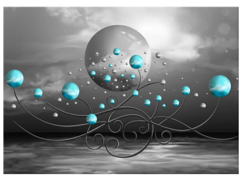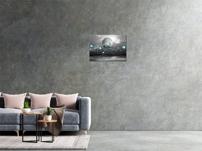 Úvod » Obrazy » Obrazy na plátne » Abstrakt » Tyrkysové gule na sivom pozadí - Obraz na plátne