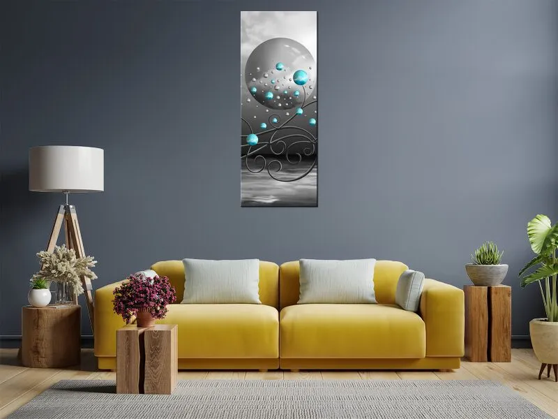 Úvod » Obrazy » Obrazy na plátne » Abstrakt » Tyrkysové gule na sivom pozadí - Obraz na plátne