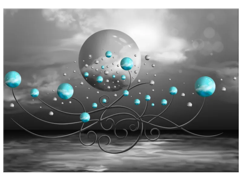 Úvod » Obrazy » Obrazy na plátne » Abstrakt » Tyrkysové gule na sivom pozadí - Obraz na plátne