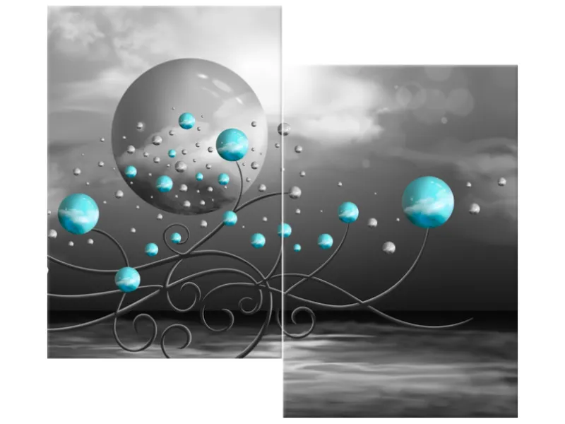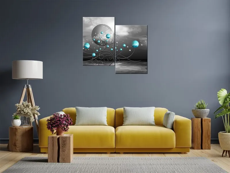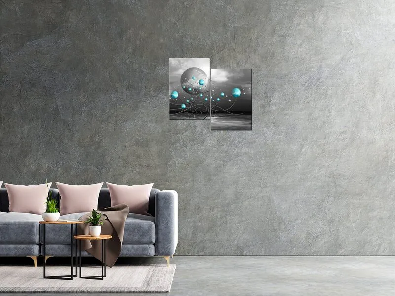 Úvod » Obrazy » Obrazy na plátne » Abstrakt » Tyrkysové gule na sivom pozadí - Obraz na plátne