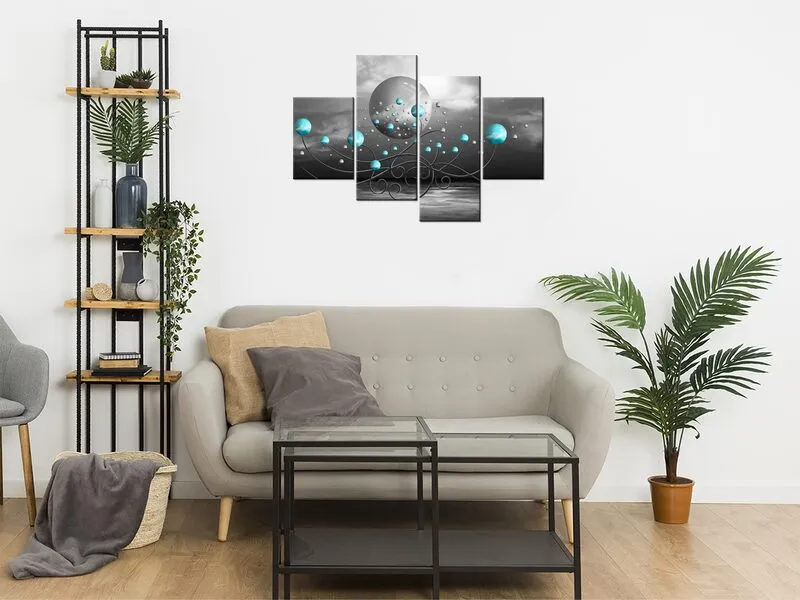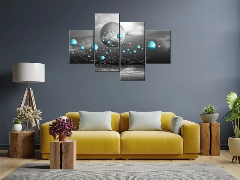 Úvod » Obrazy » Obrazy na plátne » Abstrakt » Tyrkysové gule na sivom pozadí - Obraz na plátne
