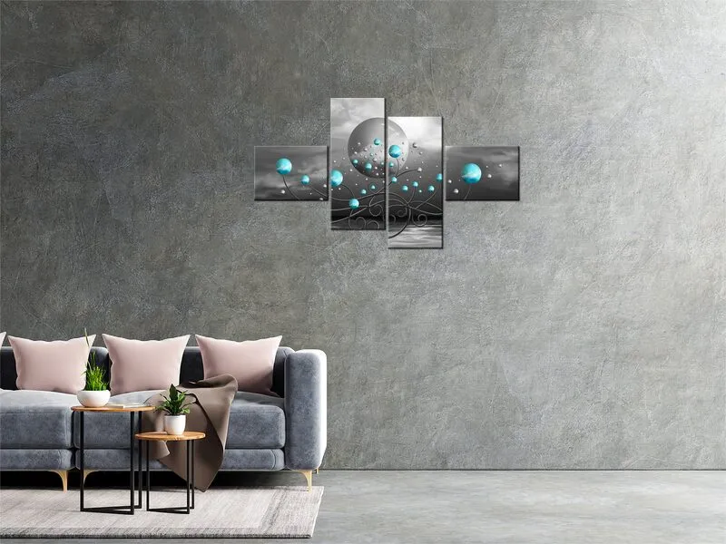Úvod » Obrazy » Obrazy na plátne » Abstrakt » Tyrkysové gule na sivom pozadí - Obraz na plátne