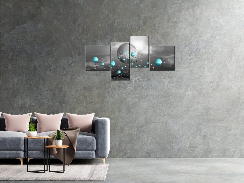 Úvod » Obrazy » Obrazy na plátne » Abstrakt » Tyrkysové gule na sivom pozadí - Obraz na plátne