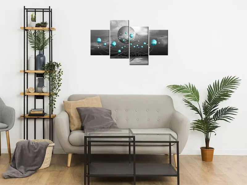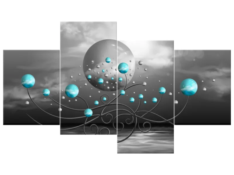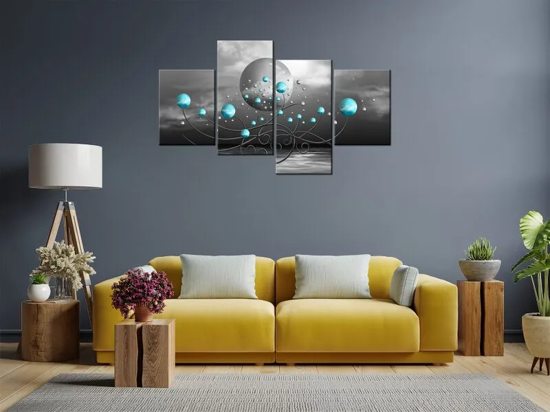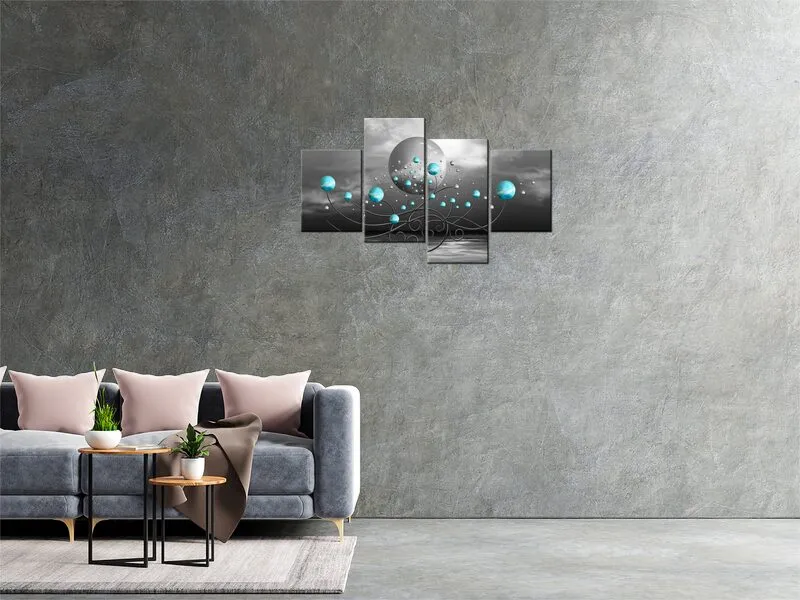 Úvod » Obrazy » Obrazy na plátne » Abstrakt » Tyrkysové gule na sivom pozadí - Obraz na plátne