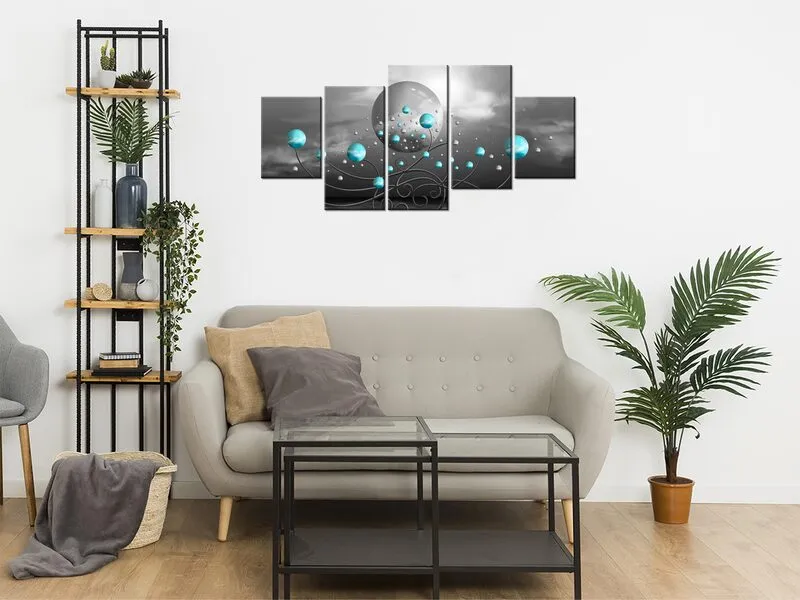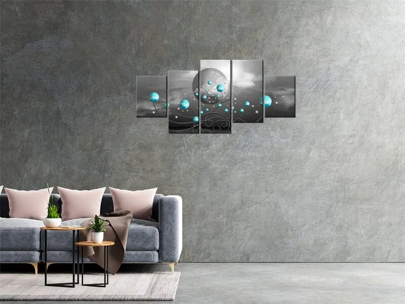 Úvod » Obrazy » Obrazy na plátne » Abstrakt » Tyrkysové gule na sivom pozadí - Obraz na plátne