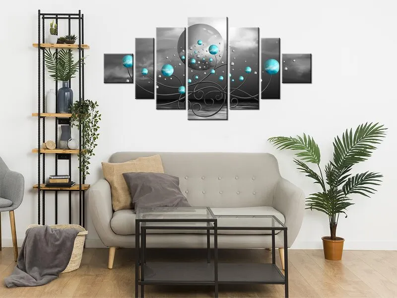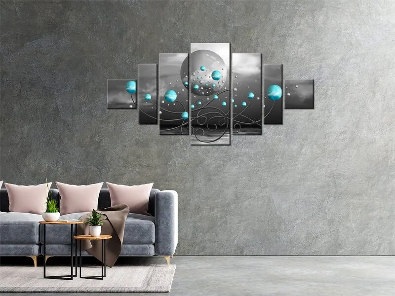 Úvod » Obrazy » Obrazy na plátne » Abstrakt » Tyrkysové gule na sivom pozadí - Obraz na plátne