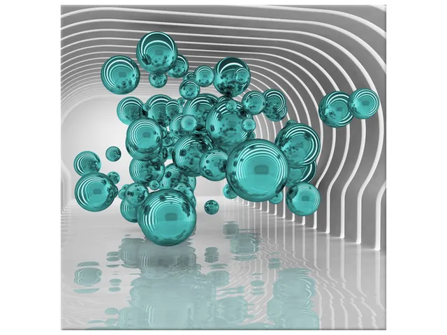 Úvod » Obrazy » Obrazy na plátne » Abstrakt » Tyrkysové gule vo futuristickej miestnosti 3D