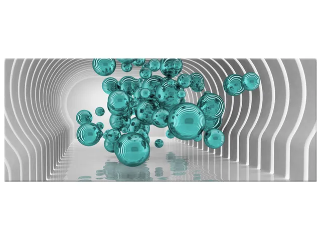 Úvod » Obrazy » Obrazy na plátne » Abstrakt » Tyrkysové gule vo futuristickej miestnosti 3D
