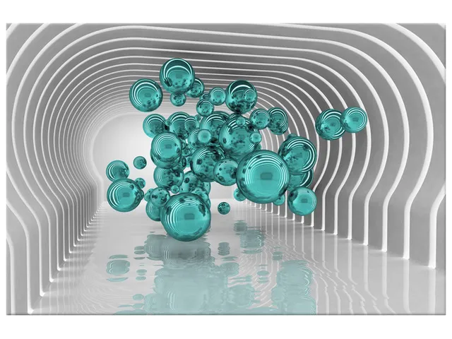 Úvod » Obrazy » Obrazy na plátne » Abstrakt » Tyrkysové gule vo futuristickej miestnosti 3D