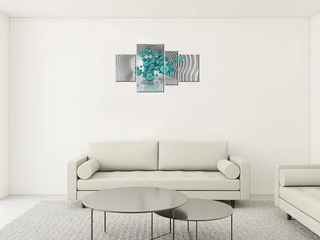 Úvod » Obrazy » Obrazy na plátne » Abstrakt » Tyrkysové gule vo futuristickej miestnosti 3D