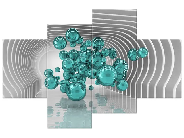 Úvod » Obrazy » Obrazy na plátne » Abstrakt » Tyrkysové gule vo futuristickej miestnosti 3D