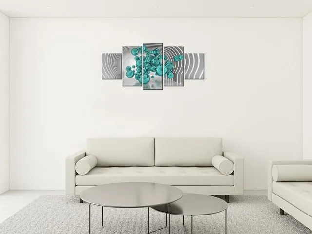 Úvod » Obrazy » Obrazy na plátne » Abstrakt » Tyrkysové gule vo futuristickej miestnosti 3D