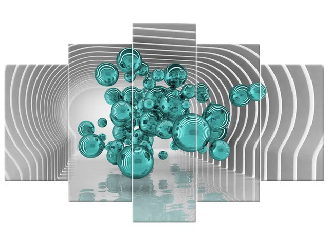 Úvod » Obrazy » Obrazy na plátne » Abstrakt » Tyrkysové gule vo futuristickej miestnosti 3D