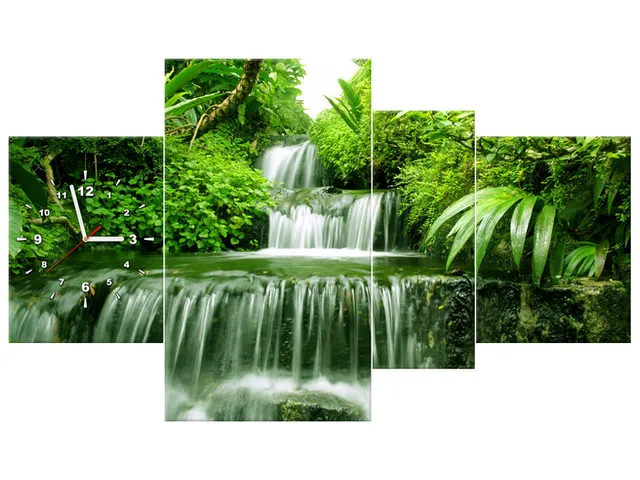 Ukľudňujúci obraz s hodinami Vodopád v dažďovom lese