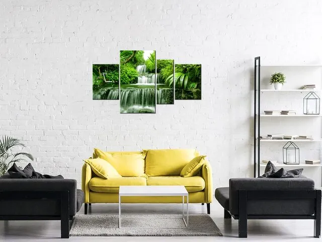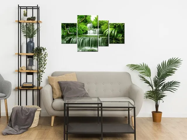 Úvod » Obrazy » Obrazy s hodinami » Ukľudňujúci obraz s hodinami Vodopád v dažďovom lese