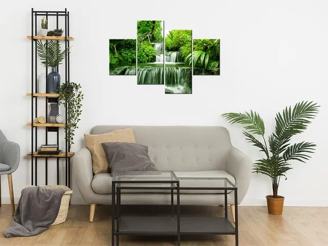Úvod » Obrazy » Obrazy s hodinami » Ukľudňujúci obraz s hodinami Vodopád v dažďovom lese