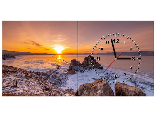 Západ slnka nad Bajkalom Obraz s hodinami