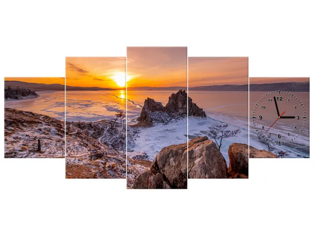 ZP5586A_3V Západ slnka nad Bajkalom Obraz s hodinami |