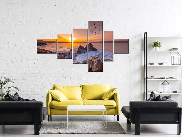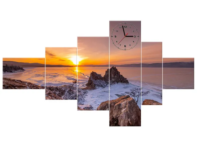 Západ slnka nad Bajkalom Obraz s hodinami