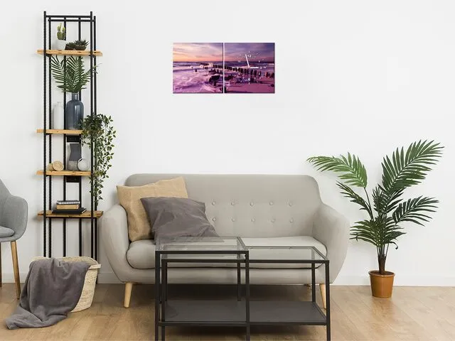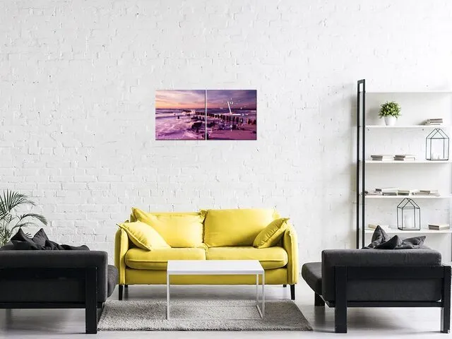Barion Pixel Západ slnka nad morskou plážou vo fialovej Obraz s hodinami