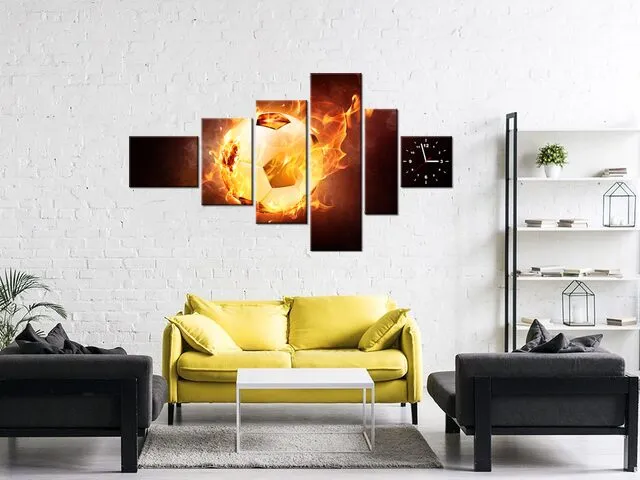 Úvod » Obrazy » Obrazy s hodinami » Zaujímavý obraz s hodinami Lopta v ohni