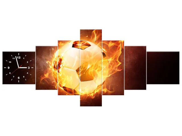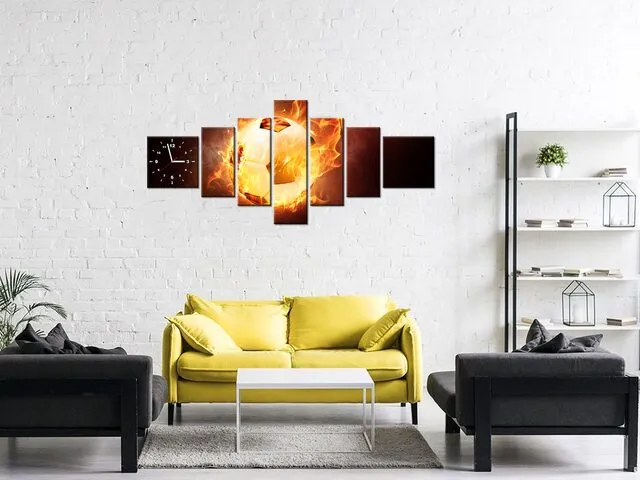 Úvod » Obrazy » Obrazy s hodinami » Zaujímavý obraz s hodinami Lopta v ohni