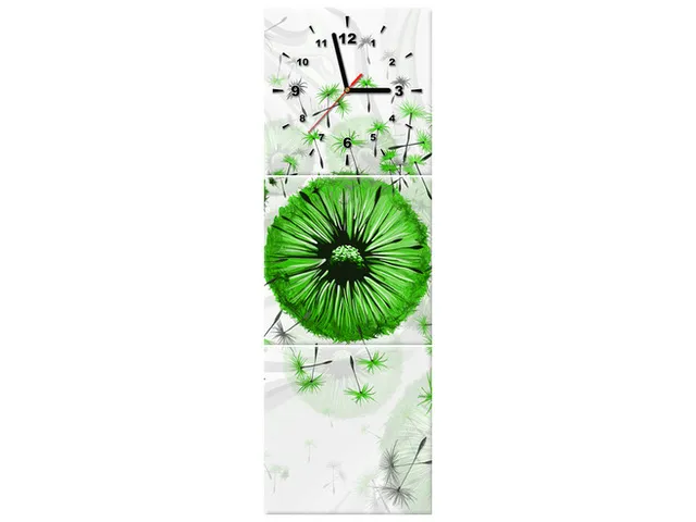 Úvod » Obrazy » Obrazy s hodinami » Zelené púpavy 4 Obraz s hodinami