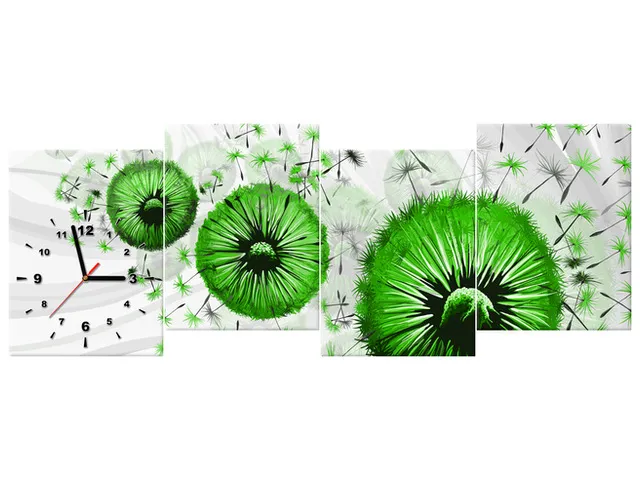 Úvod » Obrazy » Obrazy s hodinami » Zelené púpavy 4 Obraz s hodinami