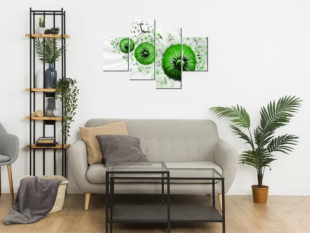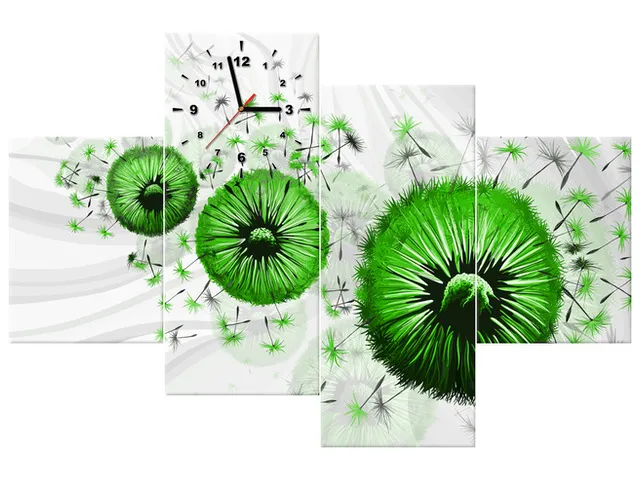 Úvod » Obrazy » Obrazy s hodinami » Zelené púpavy 4 Obraz s hodinami