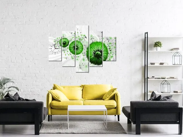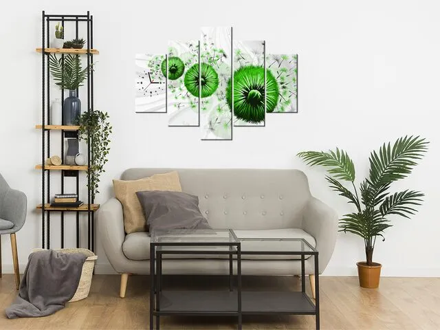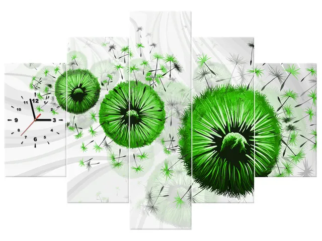 Úvod » Obrazy » Obrazy s hodinami » Zelené púpavy 4 Obraz s hodinami
