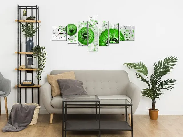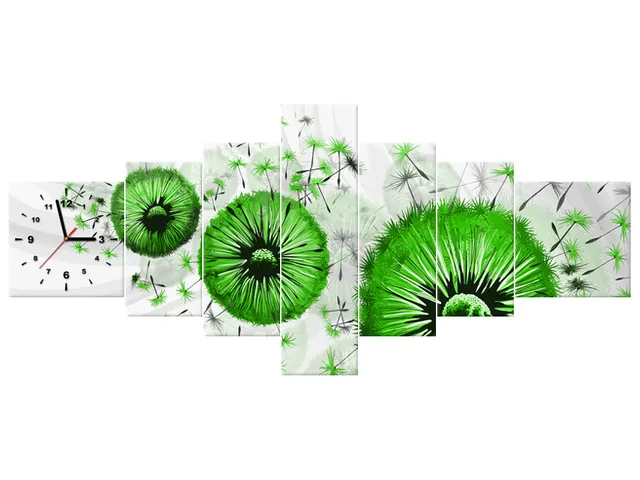 Úvod » Obrazy » Obrazy s hodinami » Zelené púpavy 4 Obraz s hodinami