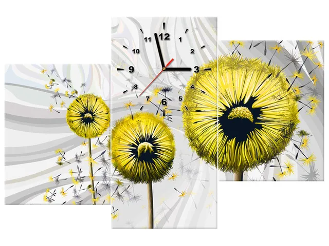 Úvod » Obrazy » Obrazy s hodinami » Žlté púpavy 3 Obraz s hodinami