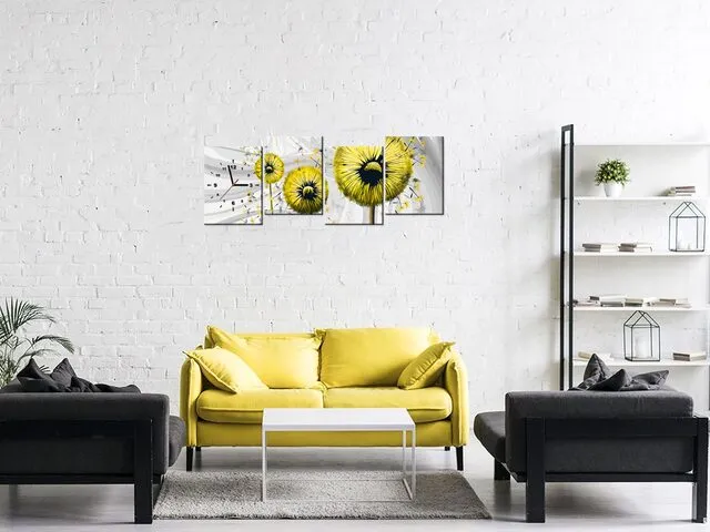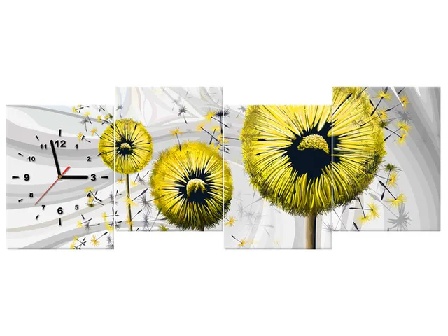 Úvod » Obrazy » Obrazy s hodinami » Žlté púpavy 3 Obraz s hodinami