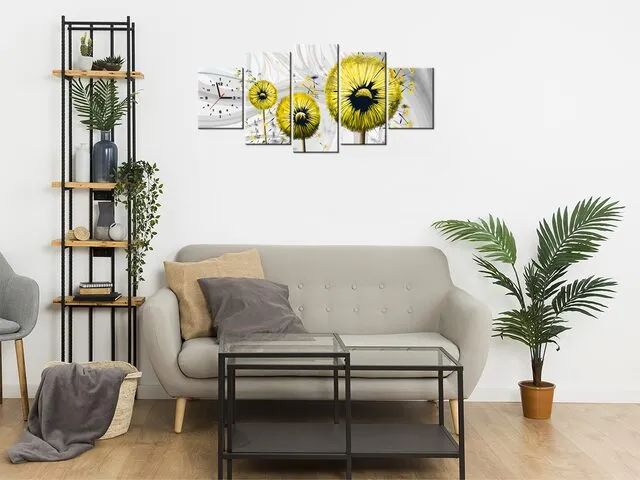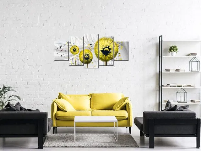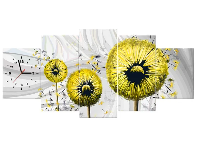 Úvod » Obrazy » Obrazy s hodinami » Žlté púpavy 3 Obraz s hodinami