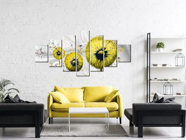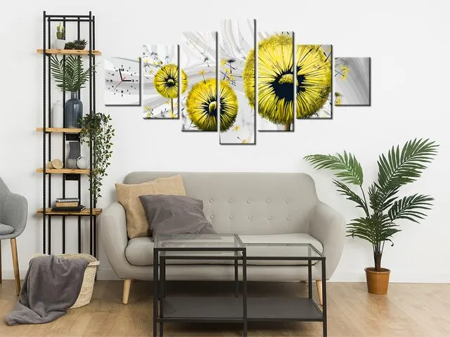 Žlté púpavy 3 Obraz s hodinami