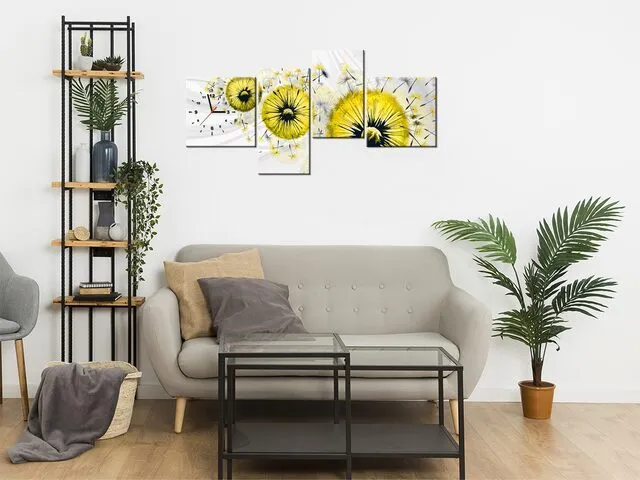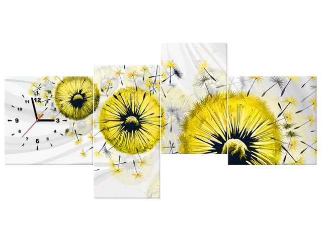 Úvod » Obrazy » Obrazy s hodinami » Žlté púpavy 4 Obraz s hodinami