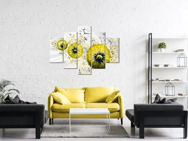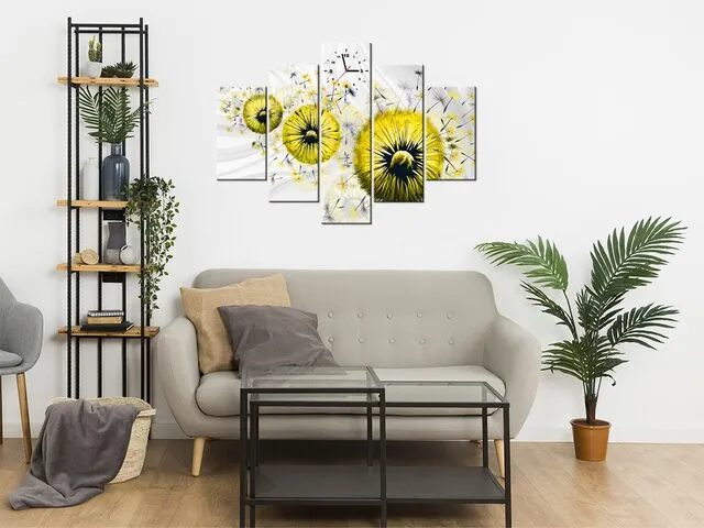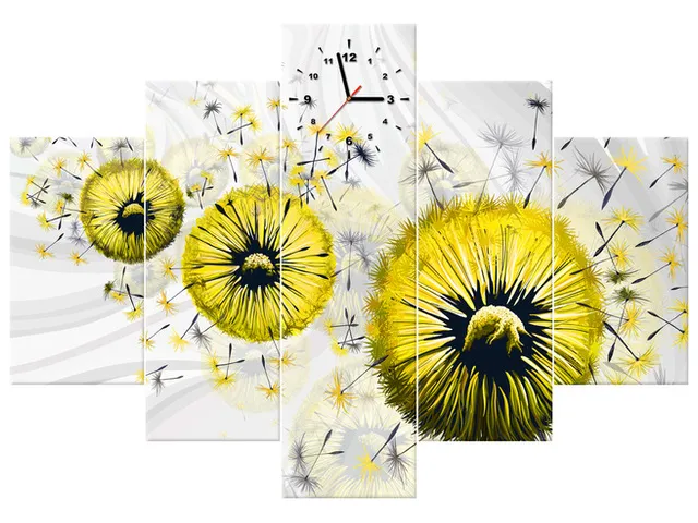 Úvod » Obrazy » Obrazy s hodinami » Žlté púpavy 4 Obraz s hodinami