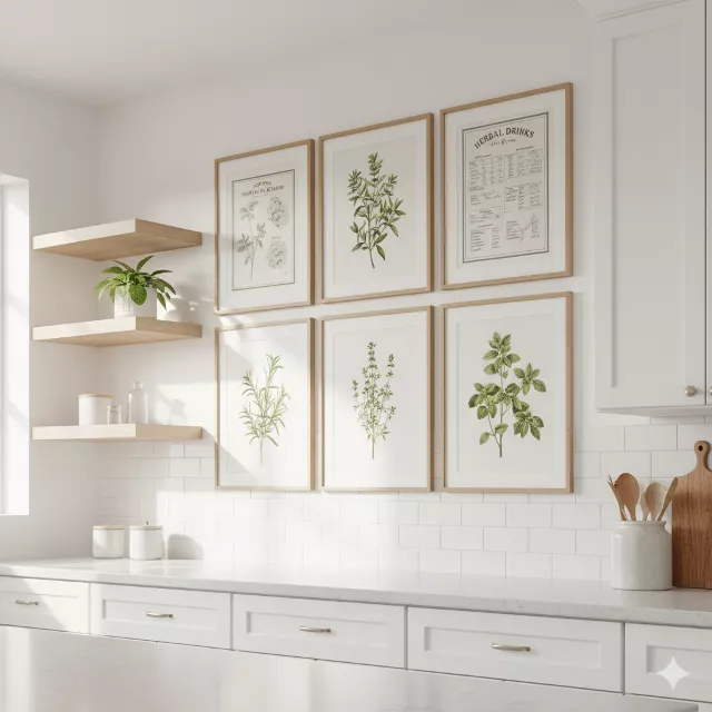 Pre milovníkov prírody a sviežosti sú ideálne obrazy s bylinkami, listami, kvetmi alebo botanickými ilustráciami. Tieto motívy prinášajú do kuchyne pocit vitality a čistoty. Zelené tóny majú upokojujúci efekt a môžu krásne doplniť kuchyne s drevenými prvkami alebo tie v škandinávskom štýle. Vyskúšajte aj grafiky s receptami na bylinkové nápoje alebo pestrý herbár, ktoré dodajú priestoru edukačný a zároveň dekoratívny rozmer. Umiestnite ich blízko okna alebo na stenu vedľa kuchynskej linky, aby ste umocnili pocit prepojenia s prírodou.